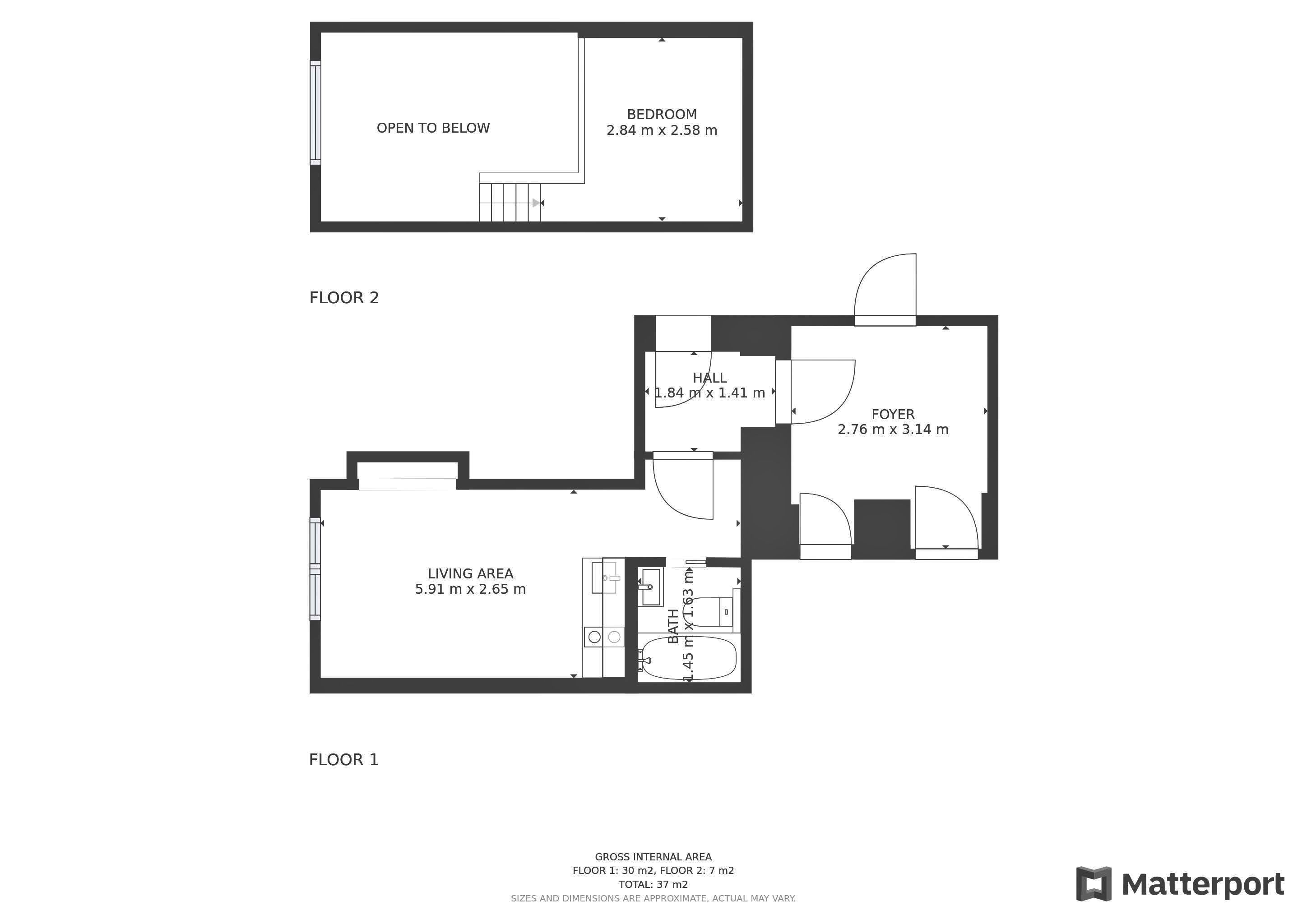 Спальное место на втором ярусе. Высота 2 этажа 1,4 метра, площадь 6м2.
