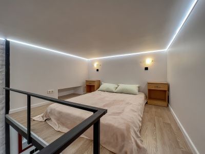Уютная двухъярусная студия у метро Василеостровская (7 минут пешком).